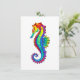 Arco de arcoiris, caballito de mar poligonal sobre fondo blanco. Tatuaje brillante.