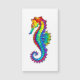 Arco de arcoiris, caballito de mar poligonal sobre fondo blanco. Tatuaje brillante.