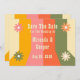 Espero que disfruten de estas rayas abstractas hippies en crema, naranja amarillo, rosa, naranja quemado y verde sabio con tipografía audaz. Este conjunto de colecciones ofrece invitaciones y suministros para fiestas de boda.