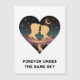 Diseño de corazón cósmico romántico que presenta a dos amantes bajo las estrellas con luna creciente y zorro del desierto. Perfecto para aniversarios, Día de San Valentín y regalos románticos.
