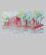Step into a world where history meets modern art. This urban sketch captures the timeless elegance of a red brick gateway, highlighting the beautiful contrast between masonry textures and decorative wrought iron gate details. Whether you are a fan of architectural illustration, vintage buildings, or the raw energy of a cityscape drawing, this piece brings that classic street scene aesthetic right into your space.