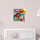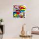 Diseño dinámico en el cómic de estilo retro. Con un brillante fondo azul y un intenso icono del arte pop multicolor, este diseño enérgico seguro que hará una adición psicológica a cualquier lugar a donde vayas, a tu casa o lugar de trabajo.