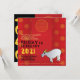 Ilustracion de búfalo de agua al estilo de los cómics colocado en el patrón tradicional chino rojo como fondo + textos para el Año Nuevo Chino o Vietnamita del Ox 2021 a personalizar delante y el mismo diseño + Año dorado del Ox en el centro con banda negra vertical para letras modernas de color amarillo: Feliz Año Nuevo Chino y gran 2021 a personalizar si quieres. Puede cambiar fácilmente estos textos (fuente, color, tamaño y posición) haciendo clic en el botón personalizar. Tarjeta de saludo, postal, artículos de artesanía, suministros de fiesta y más... Perfecto para un divertido Año Nuevo Chino del Ox 2021 o Cumpleaños (personas nacidas en el año Ox).