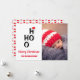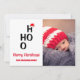 Ho Ho Ho: ¡Feliz Navidad! Regalos minimalistas con nombre de familia y sombreros rojos de Santa. Plantilla de foto a través de Pixabay con licencia CC0 y debe ser reemplazada con tu propia foto