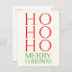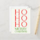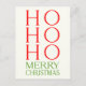 Un elegante diseño tipográfico de Ho Ho Ho Ho Ho Ho Merry navideño con letras rojas y verdes sobre un fondo crema claro.
