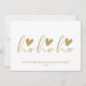 Una elegante tarjeta de vacaciones con tipografía de letra cursiva dorada con estilo, corazones y su mensaje especial y foto en el reverso. Diseñada por Thisisnotme©