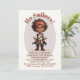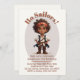 El joven se está haciendo viejo. ¡Ya tienen cinco años! Celebre la fiesta de cumpleaños siguiente de su hijo con estilo con estas invitaciones personalizadas para fiestas. Dibujo de un lindo joven pirata con pelo rizado y bandana. En beige y gris con fuente marrón y totalmente personalizable.