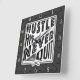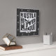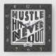 El texto dice: Hustle, Hit And Never Quit, con un icono cruzado de bastones de hockey sobre hierba.