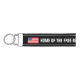 Llavero de encargo con la bandera americana y la cita patriótica.