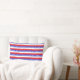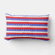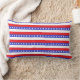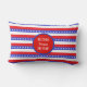 Casa dulce hogar con almohada lumbar roja y blanca a rayas. Las franjas azules tienen un patrón estelar. Home Sweet Home está sólo en el lado delantero. El texto se puede personalizar. Trae a casa un pequeño pedazo de alegría.