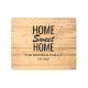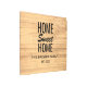 Arte metalizado personalizado que presenta un fondo de textura de madera clara con la cita "Hogar dulce". Añada el apellido de su familia a este producto para darle un toque personal.