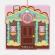 Perfecto para tu árbol de Navidad o envolver para regalo de la casa! Casa de galletas/dulces con chocolate y escarcha con fondo de color rosa azúcares. Visita Fun4UDesigns para más artículos de hogar dulce y PartyFactory para obtener suministros de fiesta!