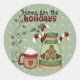 "(Tarjeta coincidente y Postage disponible) Aquí hay un pequeño grupo especial de pegatinas "Hogar para las vacaciones" que se añaden a todos sus sobres de vacaciones este año. Este bonito diseño cuenta con un contenedor de chocolate caliente rodeado de dulces, remolinos de hojas huecas y un lindo tazón de chocolate caliente delicioso. Asegúrese de agregar las tarjetas y sellos de correo coincidentes a su pedido. ¡Haz que cada tarjeta que envíes esta temporada de vacaciones sea algo especial para los que están en tu lista de tarjetas!"