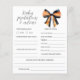 ¡Celebremos la llegada de una pequeña con nuestras encantadoras predicciones de Baby Shower sobre el tema Bow de Halloween y hojas de consejos! Son la manera perfecta de marcar la tónica de una ducha de bebé de temática Halloween, con un naranja delicioso y un coqueta negro sobre un fondo blanco y limpio.