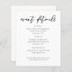 Moda sencilla y elegante, nuestra minimalista colección de bodas cuenta con una tipografía cursiva elegante para su evento moderno. Los detalles de los eventos audaces incluyen un guión sencillo en negro en una hoja de papel blanco. Añada su ceremonia y su recepción, además de opciones de alojamiento para sus huéspedes. Se puede incluir una lista de hoteles o direcciones.