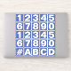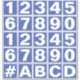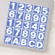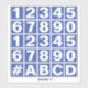 Números de 0 a 9. Números individuales como pegatinas en una hoja. Azul y blanco.