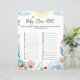 Bebé con el juego "Baby Item ABC". ¿QUÉ OBJETO DE LOS NIÑOS EMPIEZA CON CADA CARTA? El artículo del Baby Shower Game incluye adorables ilustraciones acuáticos de plantas con hojas suaves de color pastel esmeralda y azul, ramas, arcos y flores blandas de color rosa.