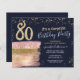 Elegante frontera dorada Faux con brillantes detalles de confeti en la frontera superior. Torta falsa rosa y purpurina dorada con edad ajustable encima del pastel. Todo el texto es ajustable y fácil de cambiar para sus propias necesidades fiestas. Gran diseño de plantillas de cumpleaños sorpresa. Cualquier año/edad.