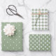 Este conjunto de 3 papel de envoltura es de color verde y blanco sabio. Este conjunto está diseñado con un punto de polka de diferente tamaño.