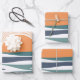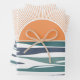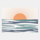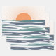 Resumen ilustracion de la salida del sol con sol naranja y decoración de olas de mar azul, blanco y turquesa