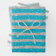 Hoja De Papel De Regalo Aqua Blue Silver Sparkly Confetti Stripes