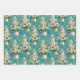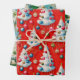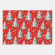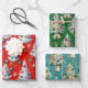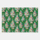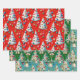 Este conjunto de papel envolvente presenta un tema de Navidades caprichosos y retro. Los diseños muestran un patrón repetido de floridos árboles blancos de Navidad decorados con coloridos adornos vintage y guirnaldas con cuentas. Una de ellas está decorada con un fondo rojo intenso y otra con un fondo verde clásico. La tercera opción, con un fondo azul claro, incluye las campanas colgadas y detalles de nieve. Este encantador artículo es perfecto para todo aquel que ame el nostálgico ambiente de unas vacaciones de mediados de siglo.