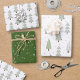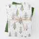 Colección de tres hojas coordinadas de papel de envoltura con un patrón de árboles navideños abstractos y árboles forestales modernos en la nieve en verde salvia, verde oliva y blanco. ASISTENCIA: Para obtener ayuda con la modificación o personalización del diseño, el cambio de color, el redimensionamiento, la transferencia del diseño a otro producto o si desea coordinar elementos, póngase en contacto con el diseñador ANTES DE PEDIDOS a través de la pestaña del MENSAJE de charla de Zazzle, o envíe un correo electrónico a makeitaboutyoustore@gmail.com.