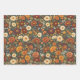 Beautiful autumn flowers and leaves in fall colors of burgundy, cream, orange, and russet combine to make a beautiful set of wrapping papers for any occasion.