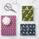Los pájaros azules sobre los rojos, los amarillos en un bosque verde y los azules y blancos encaramados sobre ramas hacen un bonito conjunto de papel envolvente con un tema de pájaro. ¡Genial para cualquier ocasión!