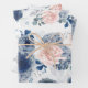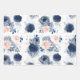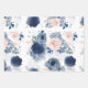 Hoja De Papel De Regalo Azul polvoriento y flores rosadas Botánico elegant