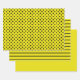 Esta hoja de papel envolvente contiene una hoja amarilla con puntos de polka negros, una amarilla con rayas negras y una amarilla.