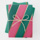Hoja De Papel De Regalo Bandas modernas rosadas y verdes y doradas