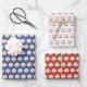 Hojas de papel de regalo con patrón de béisbol / softbol en rojo, blanco y azul. Excelente papel de regalo temático deportivo.