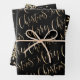 El juego de papel de envolver de regalo para navidades presenta caligrafía moderna de oro falso alegre guión de Navidad, copos de nieve audaces y estrellas texturadas con fondo negro editable en color. Seleccione "Haga clic para hacer más personalizar" para ajustar el color de fondo del personalizado o el tamaño del patrón.