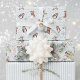 Este lindo papel de envoltura de personalizado de Navidad de bebé, neutral de género, tiene 3 sábanas únicas: 1. Ilustracion hecho a mano de pijamas de invierno, animales rellenos y bichos colgados en un tendedero, contra un patrón de Navidades pijama bodysuit, animales de lujo, botellas de bebé, bibs, pacificadores, regalos y pequeñas estrellas amarillas. nombre y evento de personalizable. Elegante fondo azul suave. 2. Patrón tachado de azul y blanco para el bebé. 3. Ilustraciones dibujados a mano de animales rellenos de invierno, copos de nieve y pequeñas estrellas amarillas