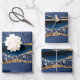 Láminas de papel de regalo de mármol de ágata con brillo dorado azul de moda. Juego de tres.