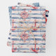 Hoja De Papel De Regalo Blue Red Anchors Floral Stripes Beach Birthday