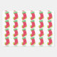 Un trío de envolturas de regalo, cada una con un diseño diferente, es ideal para sus regalos en el día del Navidad. La primera hoja tiene un caldo rojo con rayas horizontales verdes; la segunda con rayas rosas y verdes y la tercera verde con estrellas azules y rosas y rayas rojas y azules más un pom rojo. Estos modernos y divertidos patrones de envoltura actuales son ideales para su familia; amigos y compañeros de trabajo en el día del Navidad.