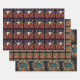Papel de regalo de Navidad con botas vaqueras occidentales, toro LongHorn, lazo y poinsettia