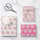 These fun and whimsical wrapping paper sheets features bright pink and gold elegant flowers.