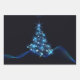 Hoja De Papel De Regalo Brillo azul de estrellas en árbol de Navidad oscur