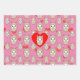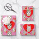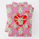 Hoja De Papel De Regalo Cabeza De Llama Cuta Y Fondo Rosa De Corazón Rojo