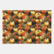Esta lujosa y delicadamente detallada hoja de papel de envoltura incluye patrones ilustrados de calabazas y flores de otoño en oscuros y claros fondos.