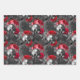 Hoja De Papel De Regalo Calaveras y flores rojas en gris