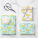Yellow canaries wearing Santa hats and perched on winter greenery sing, "Fa la la la laaa" for a festive canary pattern on custom flat sheets of wrapping paper. Choose your favorite color background on each sheet instead of the mint green, light blue, and white shown here. Pet bird lovers are sure to enjoy this cute Christmas gift wrapping paper!