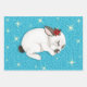 Hoja De Papel De Regalo Conejo blanco durmiendo en un fondo azul resplande