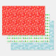 Pequeños árboles verdes de Navidad, y un divertido patrón de copos de nieve en rojo, y el papel de envoltura de regalo azul hielo.