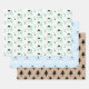 Navidades envuelven papel de muñeco de nieve con hojas planas. Mi propia obra de arte de snowman cubre dos de las sábanas. El pequeño muñeco de nieve invisible lleva un gorra negro y una bufanda, y sostiene un corazón rojo sobre una cuerda. El otro patrón de muñeco de nieve lo tiene parado en una deriva de nieve usando una bufanda azul. Los colores del fondo son verde menta pálido y azul muy claro. La tercera hoja de papel contiene árboles negros con miembros giratorios. El patrón de los árboles está impreso sobre el beige. Estas grandes hojas de papel vienen rodando, y no tendrán pliegues. Divertidos diseños de papel para todos los miembros de la familia.