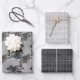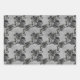 Cráneo gótico con patrón de Rosas y páginas web arañas. Se combina con hojas de envolvimiento con estampado de diamantes. Las tres hojas tienen grises y negros complementarios silenciados en patrones de estilo gótico.
