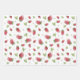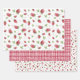 Un patrón de fresas de acuarela y flores blancas delicadas en un conjunto de tres hojas coordinadas.